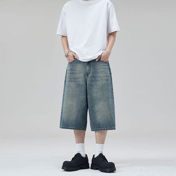 Pantalones cortos de mezclilla para hombre, ropa de calle informal de pierna ancha de gran tamaño, holgados, antibolitas, Retro, lavados, personalizados, superventas
