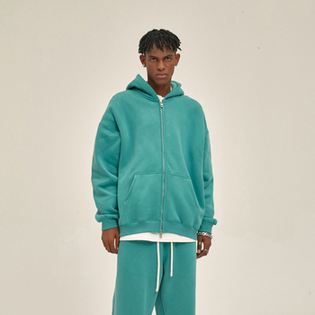 Sudadera con capucha para hombre con doble cremallera informal holgada retro lavada resistente mezcla de algodón 450gsm personalizada éxito de ventas