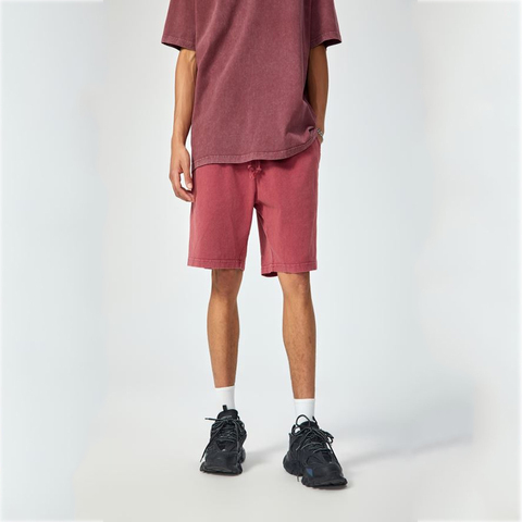 Vintage verano 100% algodón peso ligero transpirable lavado desgastado desteñido suelto liso ropa de calle pantalones cortos de hombre