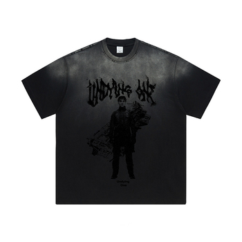 Venta al por mayor personalizado Vintage cuello redondo Digital impreso carta dibujos animados camisetas lavado con ácido desgastado ropa de calle camisetas de los hombres