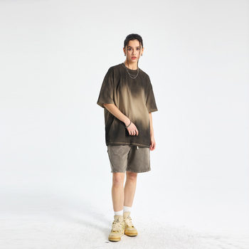 Camiseta de hombre informal de gran tamaño transpirable con bordes sueltos retro aerosol PP lavado 100% algodón 250gsm personalizada al por mayor