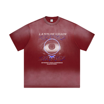 Personalizado Causal 300g Lavado Sun Fade Wear Out Dtg Print Peso pesado 100% Algodón Oversized O-cuello Knit Streetwear Hombres Camisetas